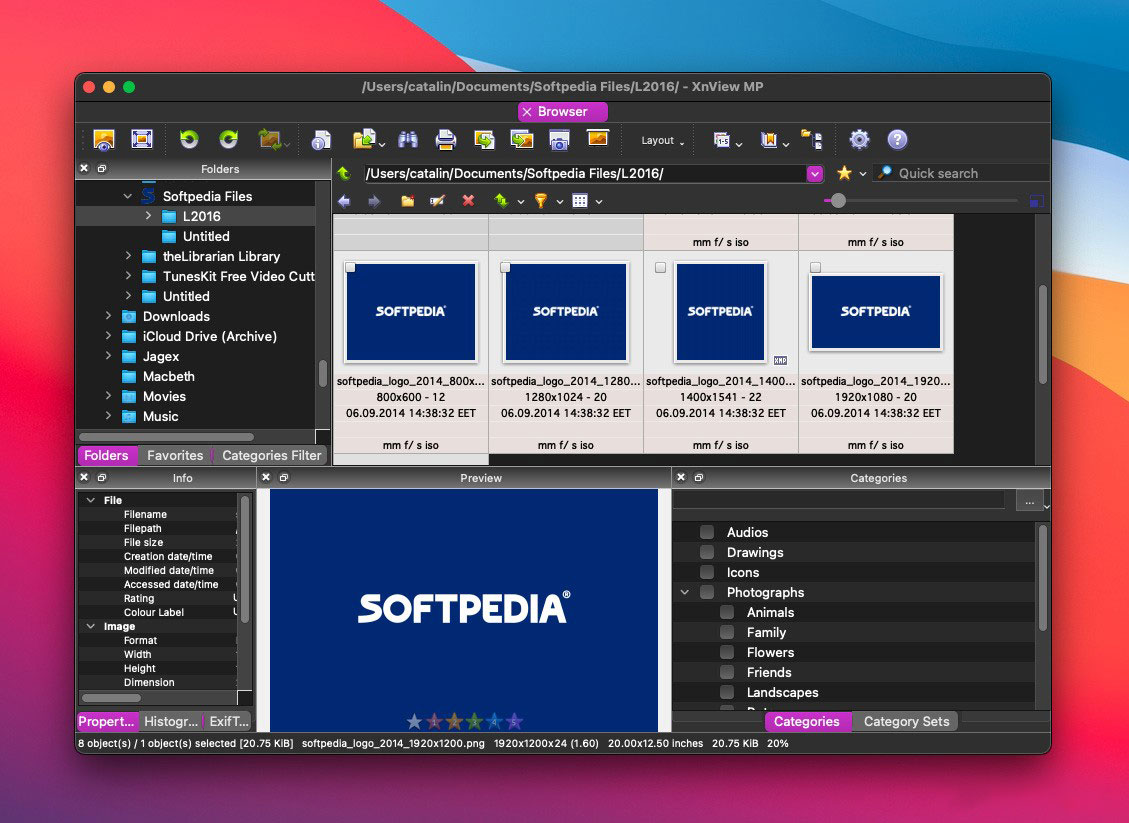 برنامج عرض الصور اكس ان فيو XnView MP للماك هو نسخة مطوّرة ومحسّنة من برنامج XnView الكلاسيكي، يقدم تجربة متقدمة لإدارة الصور على الماك مع دعم لأكثر من 500 صيغة مختلفة، بما في ذلك الصور التقليدية، وصيغ RAW الخاصة بالكاميرات، والملفات المتحركة، وصيغ الرسوم عالية الدقة.